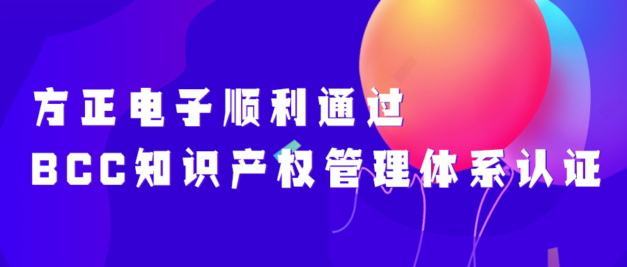 近日,方正電子順利通過新世紀檢驗認證有限責任公司(簡稱BCC)知識產權管理體系現場審核,并獲得知識產權管理體系認證證書。 ...