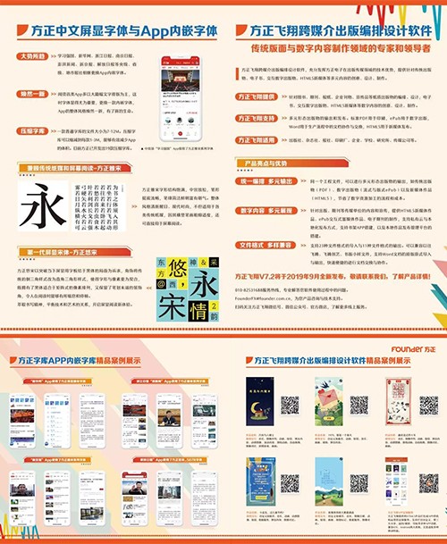 本次方正電子的數博會展臺,五大展區精彩紛呈:智慧出版展區、按需出版展區、知識服務展區、內容制作展區、傳承創新——方正出版成果展區,展出數字協同編纂、智能排版、智能審校、知識服務、按需出版、內容制作等覆蓋出版全流程數字化的12個解決方案,目前這些解決方案廣泛應用于全國出版社及學術期刊等領域,極大地推動了中國出版機構的數字化轉型升級與融合發展,也為其構建全媒體發展格局提供了強大技術支撐,為滿足移動互聯時代人們日益豐富的閱讀需求貢獻了力量。
