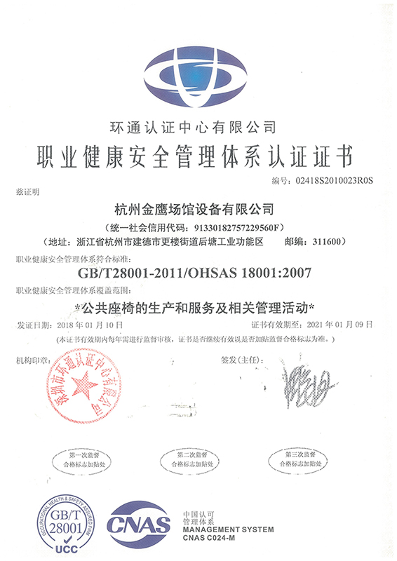 職業(yè)健康安全體系認證證書