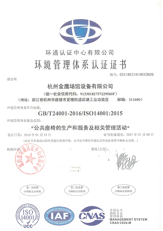 環(huán)境管理體系認證證書
