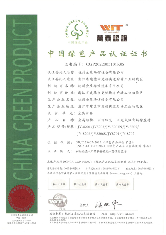 中國綠色產品認證證書